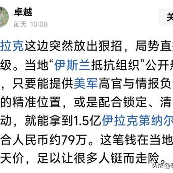 伊拉克“民兵组织”什么鸟?竟然如此嚣张跋扈,高额奖金悬赏,提供美军事与情报高官位置,或配合锁定清除,就能拿到1.5亿伊币,约人民币79万?